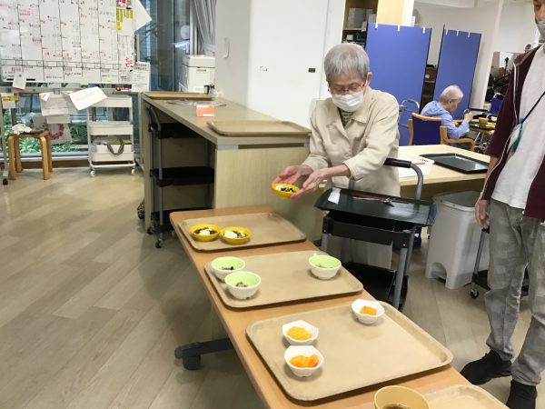 利用者さまが盛り付けや配膳の協力をしてくださるおかげで、準備も片付けもとても速やかです。