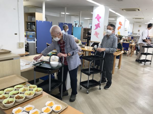 尚、利用者さまご自身で食事を受け取ったり下膳される動作には、生活に必要な身体機能の維持向上につながります。