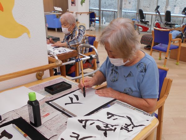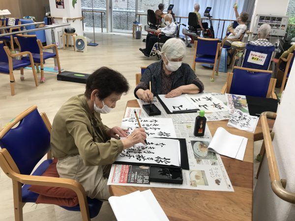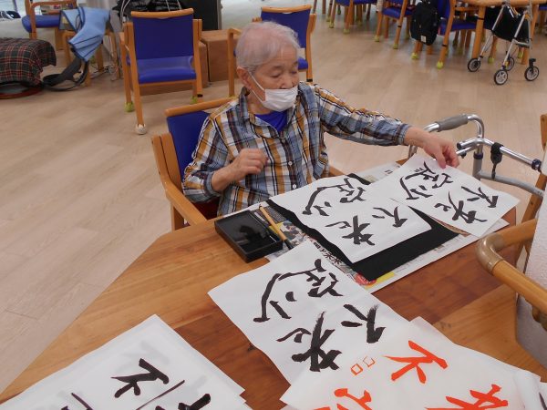 利用者さまの見事な筆運びに、職員もつい見入ってしまいます。