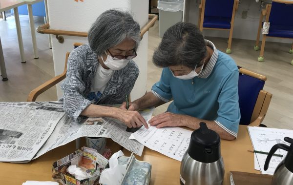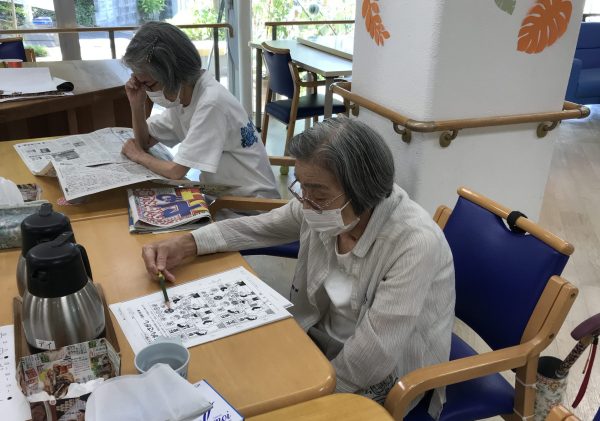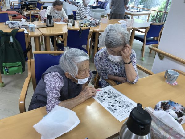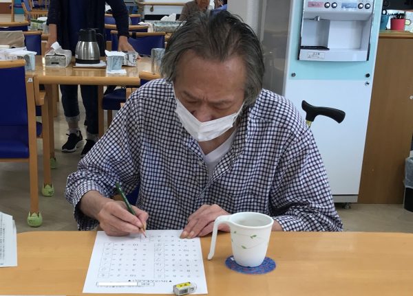 間違い探しや漢字、計算に黙々と取り組まれる利用者さま🤔