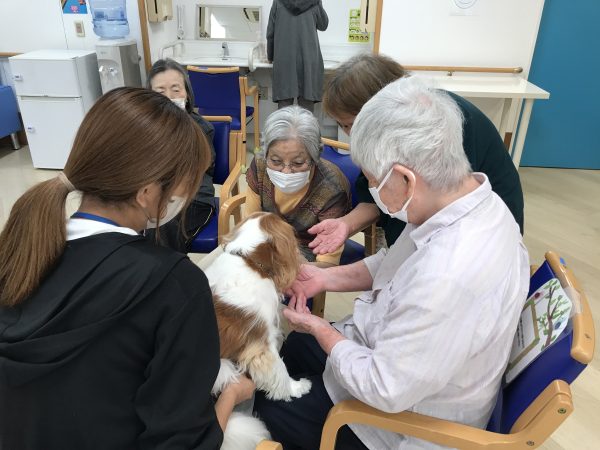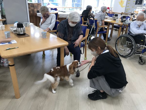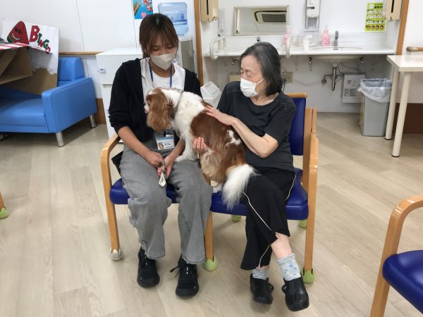 犬好きの利用者さまが心待ちにしている「犬とのふれあい」。