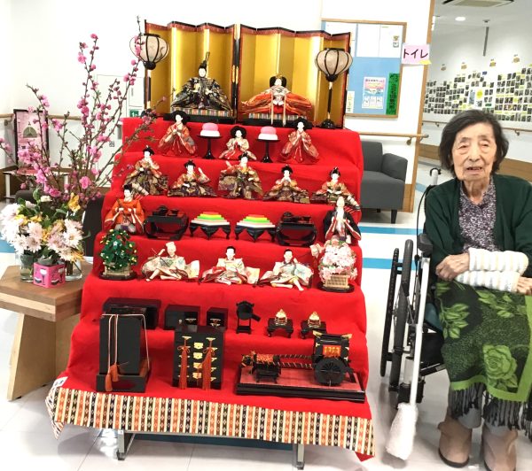 ヴィラ南本宿でもひな人形を飾り、記念撮影をしました📷